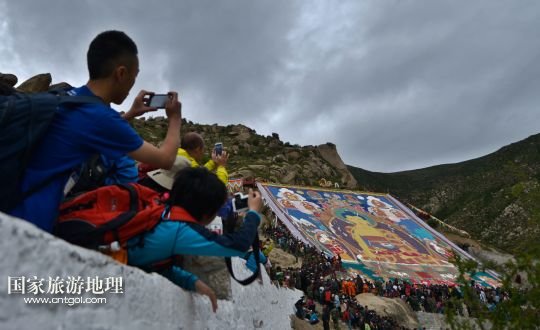 國家旅游地理 西藏拉薩8月6日訊 8月6日,拉薩哲蚌寺舉行展佛儀式。當日,以西藏最大的格魯派寺廟哲蚌寺展佛為開端的雪頓節(jié)在拉薩拉開序幕。每年藏歷六月底七月初是西藏傳統(tǒng)的節(jié)日“雪頓節(jié)”。在藏語中,“雪”是酸奶子的意思,“頓”是“吃”“宴”的意思,“雪頓節(jié)”按藏語解釋就是吃酸奶子的節(jié)日,因此又叫“酸奶節(jié)”。因為“雪頓節(jié)”期間有隆重熱烈的藏戲演出和規(guī)模盛大的曬佛儀式,所以有人也稱之為“藏戲節(jié)”“曬佛節(jié)”。 /新華社記者 普布扎西攝