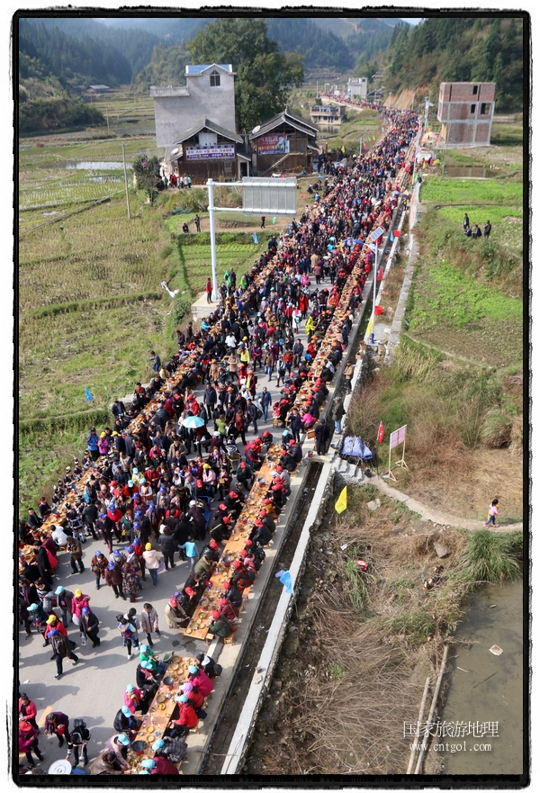 黔東南黎平萬人長桌宴1700張桌子長3.7公里刷新紀(jì)錄